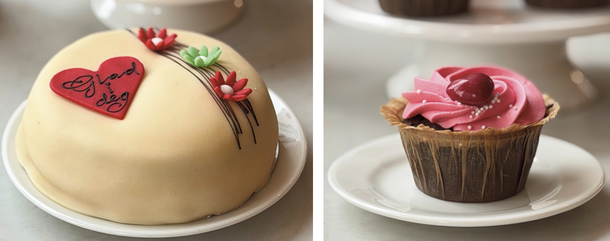 Hos Baker Hansen finner du alltid gode kaker, ferskt bakverk og mye snadder. Mordag og Valentines day kan feires med deilige kaker og nydelige cupcakes.